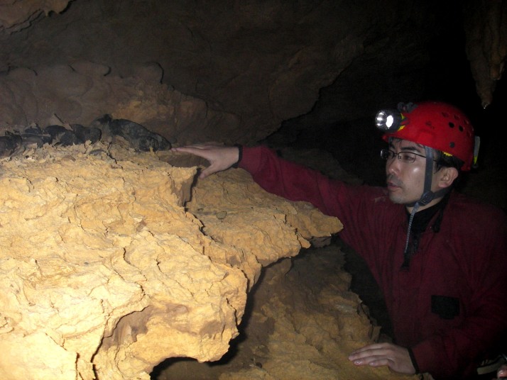 霜柱のようにしたからにょきにょきと成長する鍾乳石を発見した。