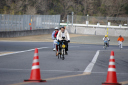 先頭集団の「ままちゃり」に跨っている選手は、ロードバイクを漕いでいる人たちだ。