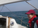 出港の時、青木ヨットの吉村教官が駆け寄ってきてくれた。