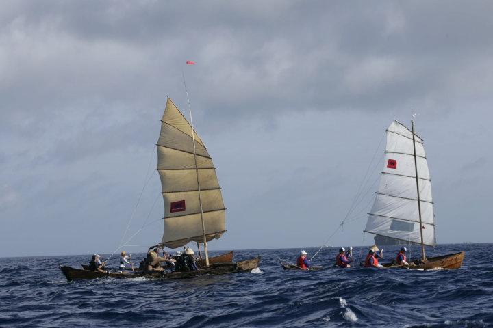 次のニヌハチームの目標は、ラダーもアウトリガーもない古式のサバニを操ること。